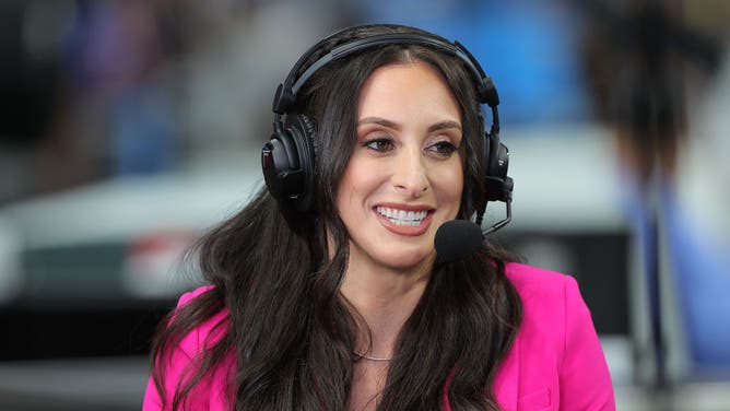 ATLANTA, GA - AUGUST 31: Taylor Tannebaum on the pre-game show before the Saturday afternoon college football game between the University of Georgia Bulldogs and the Clemson Tigers on 08/31/2024 at the Mercedes-Benz Stadium in Atlanta, GA. (Photo by David J. Griffin/Icon Sportswire via Getty Images)