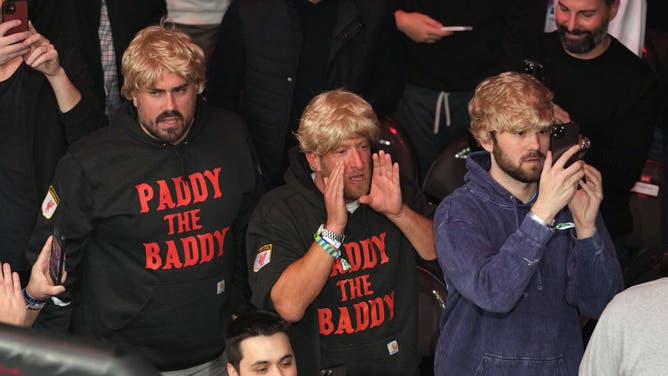 LAS VEGAS - (L-R) Dan 'Big Cat' Katz and David Portnoy of Barstool Sports support Paddy Pimblett of England during the UFC 282 event at T-Mobile Arena on December 10, 2022. (Photo by Josh Hedges/Zuffa LLC)