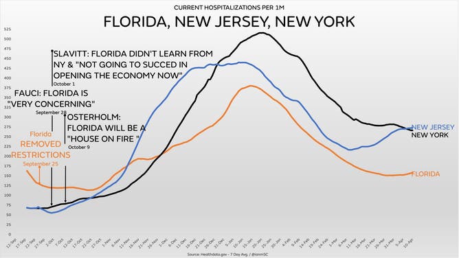 Even as it was abundantly clear that those policies were failing, as evidenced by huge surges of infection in states that followed Faucism, they did double down. Then tripled down. Then quadrupled down. All the while ignoring that their specific warnings or claims were proven false.