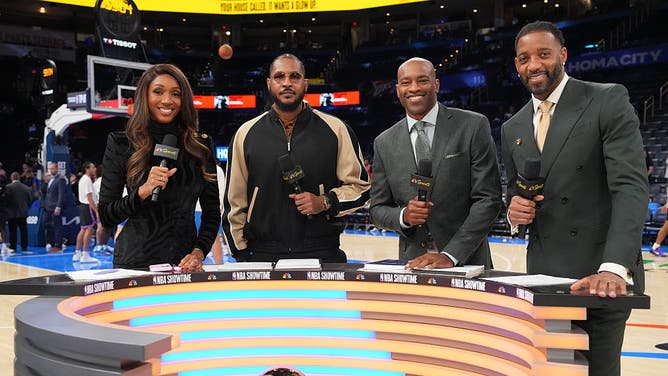 The NBC crew was on hand for the Rockets-Thunder opening-night clash, which drew 5.9 million viewers. (Photo by Jesse D. Garrabrant /NBAE via Getty Images)