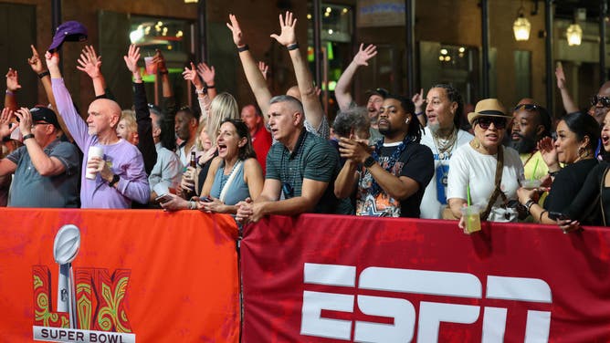 NEW ORLEANS - Fans cheer at an ESPN broadcast ahead of Super Bowl LIX between the Kansas City Chiefs and the Philadelphia Eagles on February 7, 2025. (Photo by David Buono/Icon Sportswire via Getty Images)