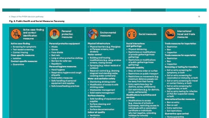 "PHSM are vital in reducing the risk and scale of infectious disease transmission and lowering hospitalization and deaths," it says. "Examples include contact tracing, quarantine and isolation, mask use, ventilation, school or workplace measures, mobility restrictions and travel requirements."