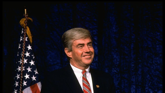 HUD Secy. Jack Kemp smilingly listening to Pres. Bush's address to Natl. Bd. of Realtors. (Photo by Diana Walker/Getty Images)