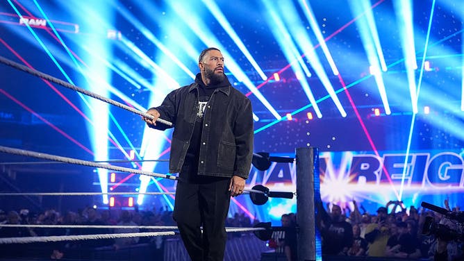 Roman Reigns enters the ring during Monday Night RAW at Gainbridge Fieldhouse on March 2, 2026 in Indianapolis, Indiana. (Photo by Rich Freeda/WWE via Getty Images)