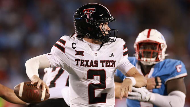 HOUSTON, TEXAS - OCTOBER 04: Behren Morton #2 of the Texas Tech Red Raiders makes a pass during the game against the Houston Cougars at TDECU Stadium on October 04, 2025 in Houston, Texas. (Photo by Kenneth Richmond/Getty Images)