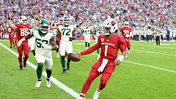 GLENDALE, Ariz. - Kyler Murray of the Arizona Cardinals scores a touchdown in the first quarter against the New York Jets at State Farm Stadium on November 10, 2024. (Photo by Norm Hall/Getty Images)