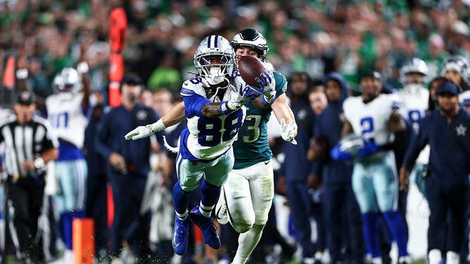 PHILADELPHIA - CeeDee Lamb #88 of the Dallas Cowboys attempts to catch a pass during the second half of an NFL football game against the Philadelphia Eagles at Lincoln Financial Field on September 5, 2025. (Photo by Kevin Sabitus/Getty Images)