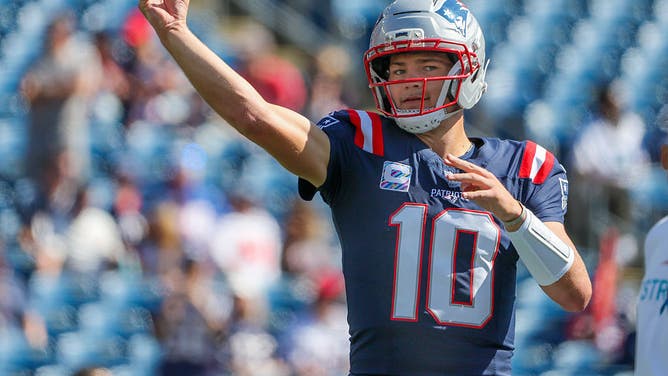 Drake Maye and the Patriots will look to play David this weekend against the AFC East Golith that is the Buffalo Bills. (Photo by Matthew J. Lee/The Boston Globe via Getty Images)