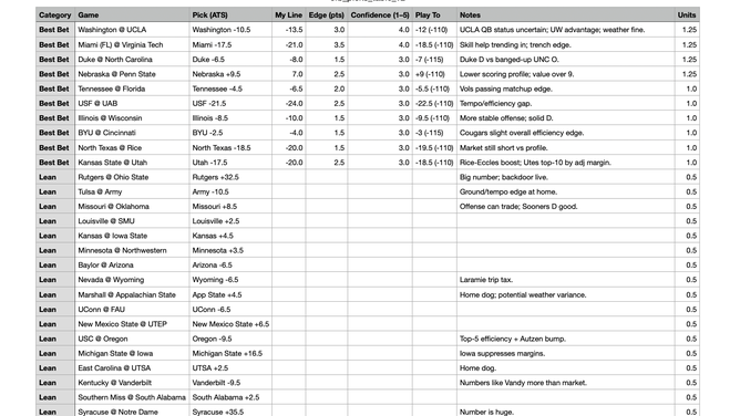 With just one week left in the college football regular season, I think the next move is fully fading ChatGPT next weekend, which will surely come back to haunt me.