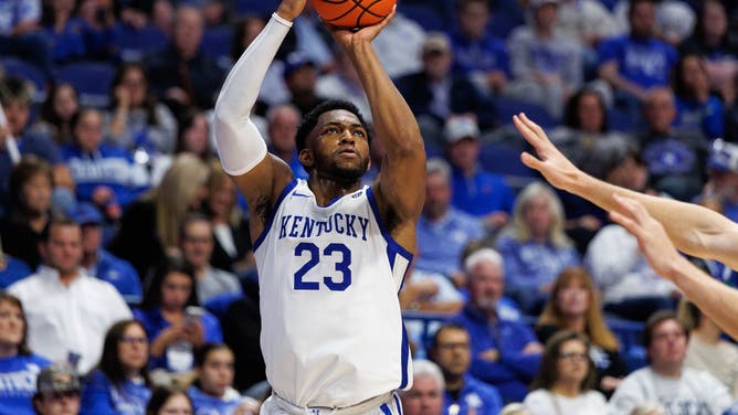 Nov 7, 2025; Lexington, Kentucky, USA; Kentucky Wildcats forward Mouhamed Dioubate (23) shoots the ball during the second half against the Valparaiso Beacons at Rupp Arena at Central Bank Center. Mandatory Credit: Jordan Prather-Imagn Images