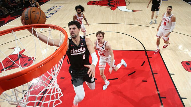 CHICAGO, IL - APRIL 4: Deni Avdija #8 of the Portland Trail Blazers drives to the basket during the game against the Chicago Bulls on April 4, 2025 at United Center in Chicago, Illinois. NOTE TO USER: User expressly acknowledges and agrees that, by downloading and or using this photograph, User is consenting to the terms and conditions of the Getty Images License Agreement. Mandatory Copyright Notice: Copyright 2025 NBAE (Photo by Gary Dineen/NBAE via Getty Images)