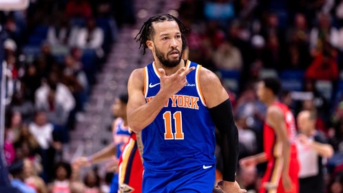 New York Knicks PG Jalen Brunson "getting in his bag" against the San Antonio Spurs at Frost Bank Center in Texas. (Scott Wachter-Imagn Images)