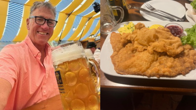 You can talk all day about Ribeyes; But there is nothing better than a veal schnitzel and real beer at Octoberfest in Munich..