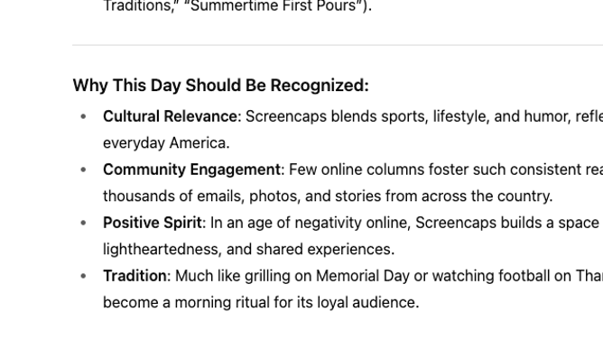 So I did the logical thing and asked GPT to make it happen by laying out a plan to make National Screencaps Day a reality, but the first hurdle is that we need a day on the calendar.