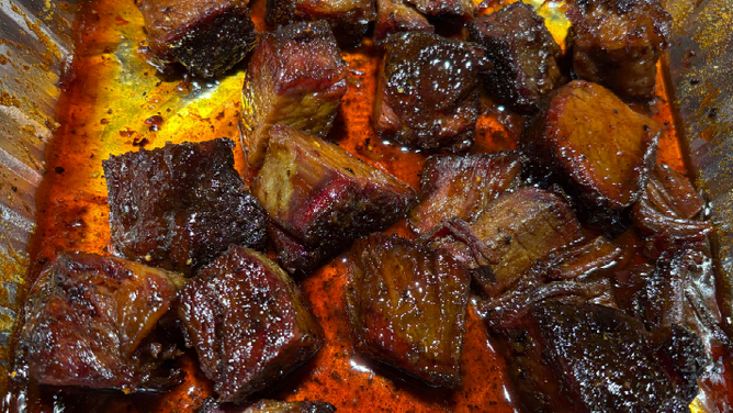 Using chuck roast instead of brisket, I took this picture halfway before my 15-year-old son decimated the entire pan!
