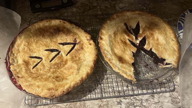 The Doughboy was exactly right…."Nothing says lovin’, like something from the oven!" In this case, two berry pies. Huckleberry and Blackberry! "Ya just gotta have’em on the table!"