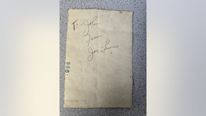 Attached is a photo of Joe Louis and an unnamed man (looks like an actor, or maybe a family member of Louis') that I found in a desk drawer in my dad's house after he passed. My father's name was John so the back signature fits (if true).