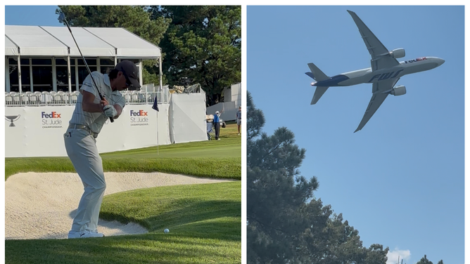 FedEx, St Jude’s and the PGA honored the late FedEx founder Fred Smith with a flyover at TPC Southwind during play at 2:59. Boeing even painted his initials on the bottom of the FedEx cargo jet for the flyover. Nice tribute to one of the pioneers of American entrepreneurship.
