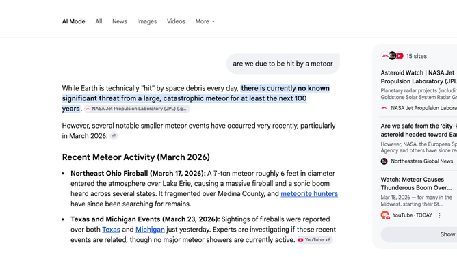 Should I trust Google Gemini right now? These meteors are coming at us fast and furious with what seems like a target right on Ohio.