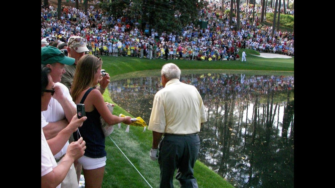 Best part was all the participants had to walk around the pond right in front of us. Dad got to say hey to Arnie, Jack, and Gary who he watched when he was young. Arnie hit a 60 foot putt in front of us and the crowd went wild.