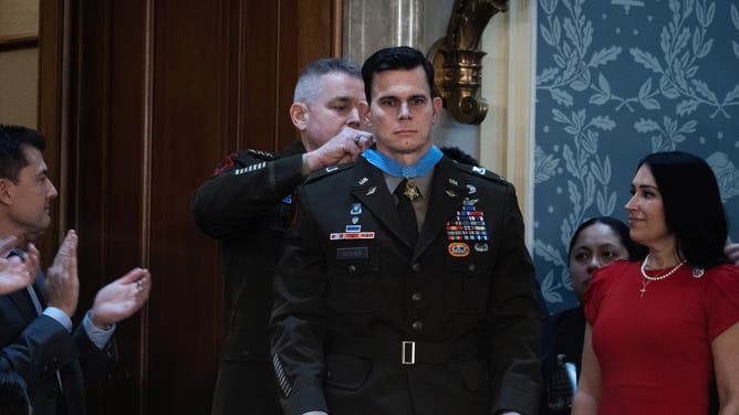 Army pilot Eric Slover earned the Medal of Honor for his actions in Venezuela to capture Nicolás Maduro. He was shot multiple times while flying in the Delta Force assault team. (Photo by Chip Somodevilla/Getty Images)