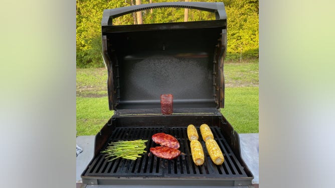 Grilled some chicken, asparagus, and corn on the cob. Not the big volume "smoke shows" from other ‘Cappers, but still great! What sets it apart is my homemade Blackberry Chipotle BBQ Sauce. I must admit, that stuff is gold!
