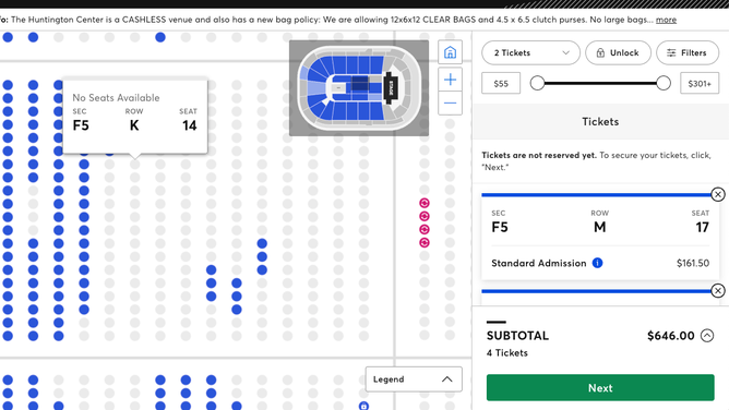 We're talking $161.50 per ticket before fees and everything else Ticketmaster adds onto the final price. Before fees, the price for four, in Toledo, Ohio, was $646.