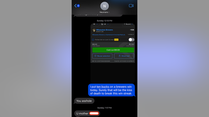 I like to think I played a small part in YOUR Reds snapping the Brewers win streak on Sunday.