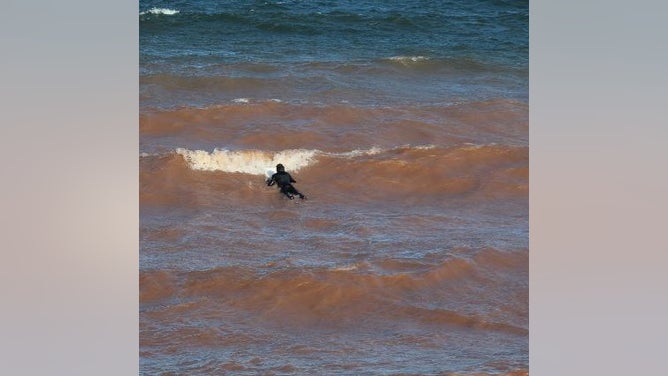 Surfing at French River MN just North of Duluth at 6:00 Sunday evening on east blowing driven winds creating angry waves on Lake Superior
