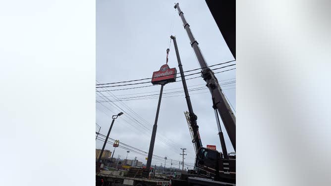 Glyn C. spotted this. He says the sign is coming down because the Wendy's is dead. After seeing Glyn's email, I took a look at Wendy's stock and it's stuck at those tragic lows in the 8s as it has been this winter.