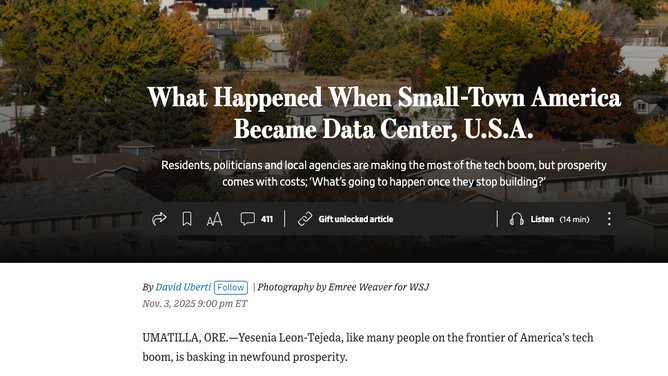 Around here, there are data center debates raging. In just the last two months, there have been three towns within 15-20 miles around here fighting against data centers and there's one massive data center being built eight miles south of us.