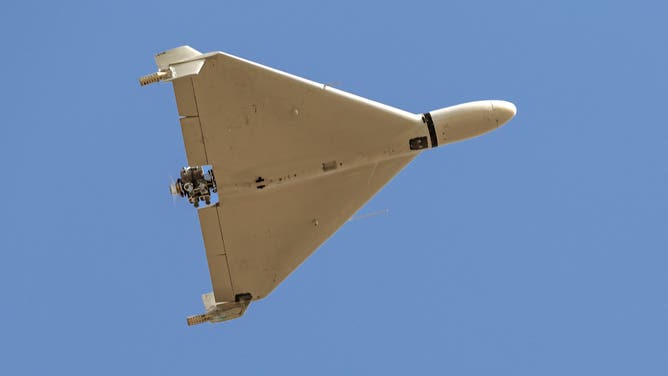 Drones have become a major part of modern warfare. Pictured is an Iranian Shahed drone – one of the most commonly used combat drones in the world. (Photo by ANONYMOUS/Middle East Images/AFP via Getty Images)