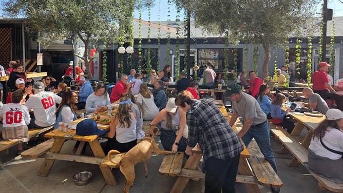 There were plans to march as a group Saturday from the micro-brewery that hosted the pre-game lunch up the hill to USD - but I talked as many as possible out of it. The glaciers never brought their earth-flattening powers to San Diego - the march from Morena Blvd. up Linda Vista Road to the USD campus is about a mile long, but probably a 100-foot elevation change. Maybe more. In 80 degrees in a blazing sun?