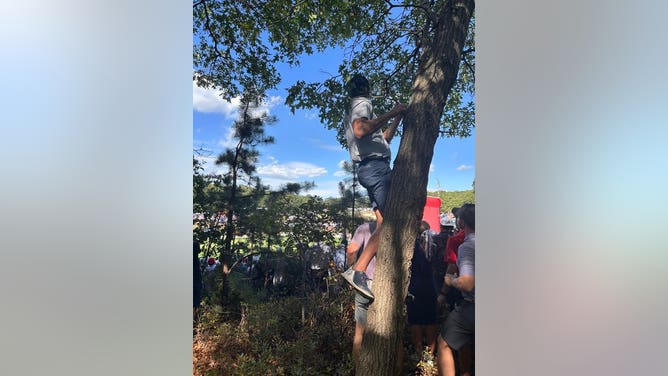 (I took this photo behind the No. 6 green where people had trudged through the Bethpage forest to find higher ground. Joe Kinsey / OutKick)