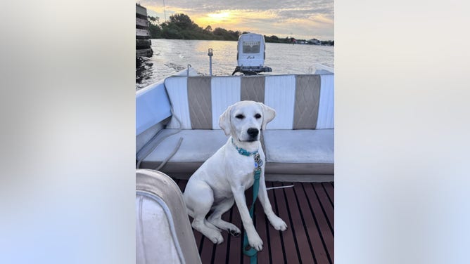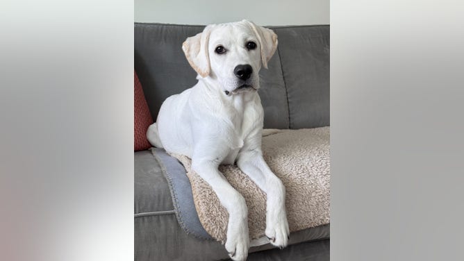 Ron W. Writes: You have featured my white Lab, Sawyer, before. At that time (June) she weighed 18 pounds. Today she weighs 55 pounds.