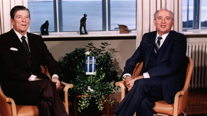 Soviet leader Mikhail Gorbachev and U.S. President Ronald Reagan famously met in Iceland in an attempt to curb nuclear threats between the two nations. (Credit: Getty Images)