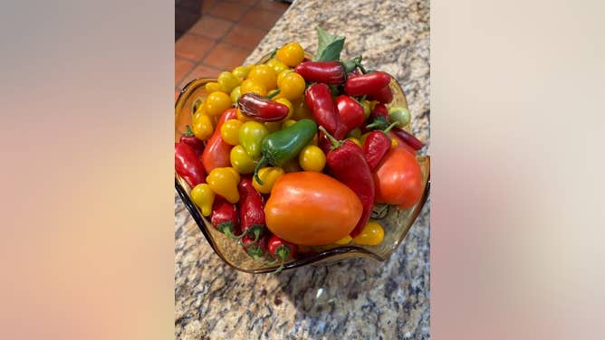— Mark in Tucson is impressed by Mike T.'s tomato & counters with his beautiful peppers: