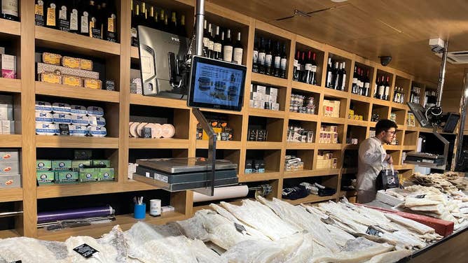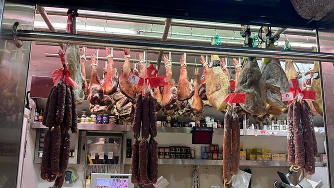 Central market, Pork shop, along with others including salted cod and black ink squid