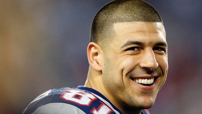 FOXBORO, MA - DECEMBER 10: Aaron Hernandez #81 of the New England Patriots smiles from the sidelines in the fourth quarter during a game against the Houston Texans at Gillette Stadium on December 10, 2012 in Foxboro, Massachusetts. (Photo by Jim Rogash/Getty Images)