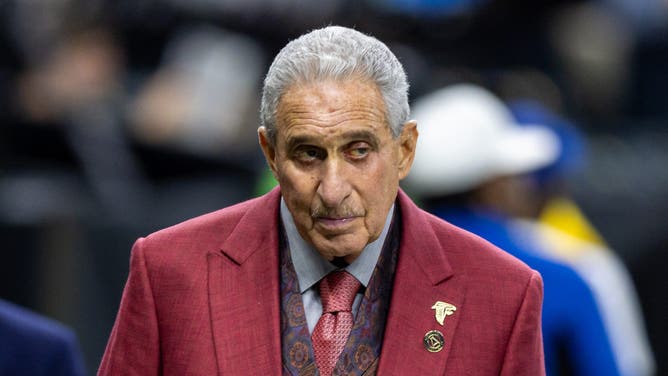 Nov 10, 2024; New Orleans, Louisiana, USA; Atlanta Falcons owner Arthur Blank looks on before during warmups before the game between the New Orleans Saints and the Atlanta Falcons at Caesars Superdome. Mandatory Credit: Stephen Lew-Imagn Images