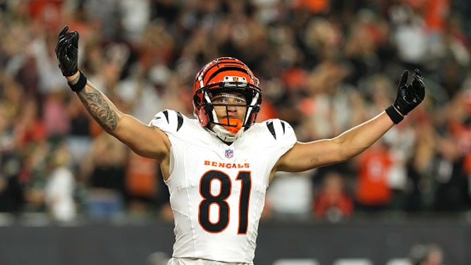 CINCINNATI, OHIO - AUGUST 10: Wide receiver Jermaine Burton #81 of the Cincinnati Bengals celebrate a touchdown during the fourth quarter of the preseason game against the Tampa Bay Buccaneers at Paycor Stadium on August 10, 2024 in Cincinnati, Ohio. (Photo by Jason Mowry/Getty Images)