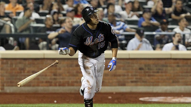 Carlos Beltran of the New York Mets hits a game-winning walk off sacrifice fly against the Arizona Diamondbacks on July 31, 2010 at Citi Field. (Photo by Jim McIsaac/Getty Images)