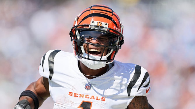 NASHVILLE, TENNESSEE - OCTOBER 01: Ja'Marr Chase #1 of the Cincinnati Bengals celebrates against the Tennessee Titans during the first quarter at Nissan Stadium on October 01, 2023 in Nashville, Tennessee. (Photo by Andy Lyons/Getty Images)