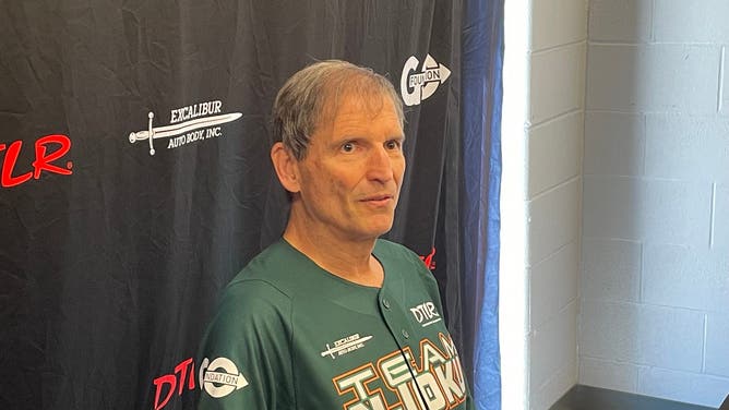 Cleveland Browns legend Bernie Kosar speaks during a news conference before the David Njoku Celebrity Softball Game on Saturday, June 8, at Classic Park in Eastlake, Ohio.