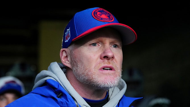 PHILADELPHIA, PENNSYLVANIA - NOVEMBER 26: Head coach Sean McDermott of the Buffalo Bills takes the field prior to a game against the Philadelphia Eagles at Lincoln Financial Field on November 26, 2023 in Philadelphia, Pennsylvania. (Photo by Mitchell Leff/Getty Images)