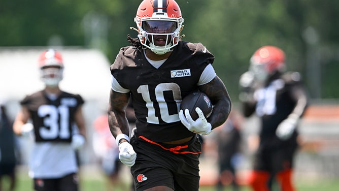 BEREA, OHIO - JUNE 11: Quinshon Judkins #10 of the Cleveland Browns runs a drill during Cleveland Browns mandatory minicamp at CrossCountry Mortgage Campus on June 11, 2025 in Berea, Ohio. (Photo by Nick Cammett/Diamond Images via Getty Images)