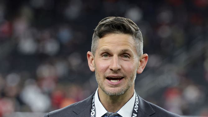 LAS VEGAS - ESPN football analyst Dan Orlovsky looks on during warmups before a game between the Atlanta Falcons and the Las Vegas Raiders at Allegiant Stadium on December 16, 2024. (Photo by Ethan Miller/Getty Images)