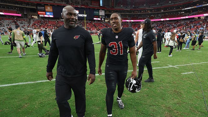 GLENDALE, ARIZONA - OCTOBER 05: Emari Demercado #31 of the Arizona Cardinals reacts as he walks off the field following the NFL game against the Tennessee Titans at State Farm Stadium on October 05, 2025 in Glendale, Arizona. The Titans defeated the Cardinals 22-21. (Photo by Christian Petersen/Getty Images)