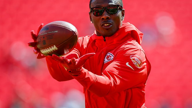KANSAS CITY, Mo. - Marquise Brown of the Kansas City Chiefs warms up prior a game between the Baltimore Ravens and Kansas City Chiefs at Arrowhead Stadium on September 28, 2025. (Photo by David Eulitt/Getty Images)