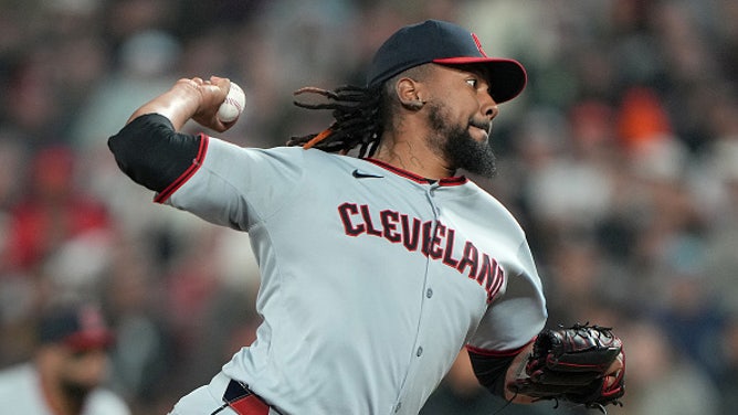 SAN FRANCISCO, CALIFORNIA - JUNE 17: Emmanuel Clase #48 of the Cleveland Guardians pitches against the San Francisco Giants in the bottom of the ninth inning at Oracle Park on June 17, 2025 in San Francisco, California. The Guardians won the game 3-2. (Photo by Thearon W. Henderson/Getty Images)